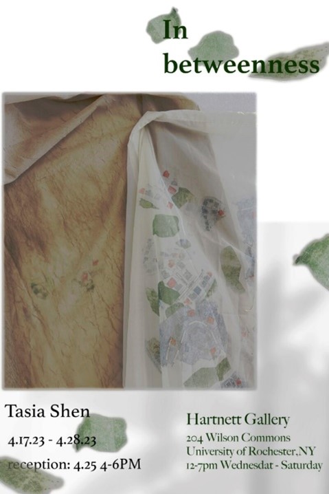 The exhibition In Betweenness is where Shen examines their experience and wonder between the two cultures. They notice themselves often switching personas while in different environments and want to know the reason behind it. In the project dinner time, through the window, and to kiss a pillow goodbye, Shen uses mass-produced materials such as curtains, tablecloths, and pillow cases, translating and interpreting objects we already know in a new way.
